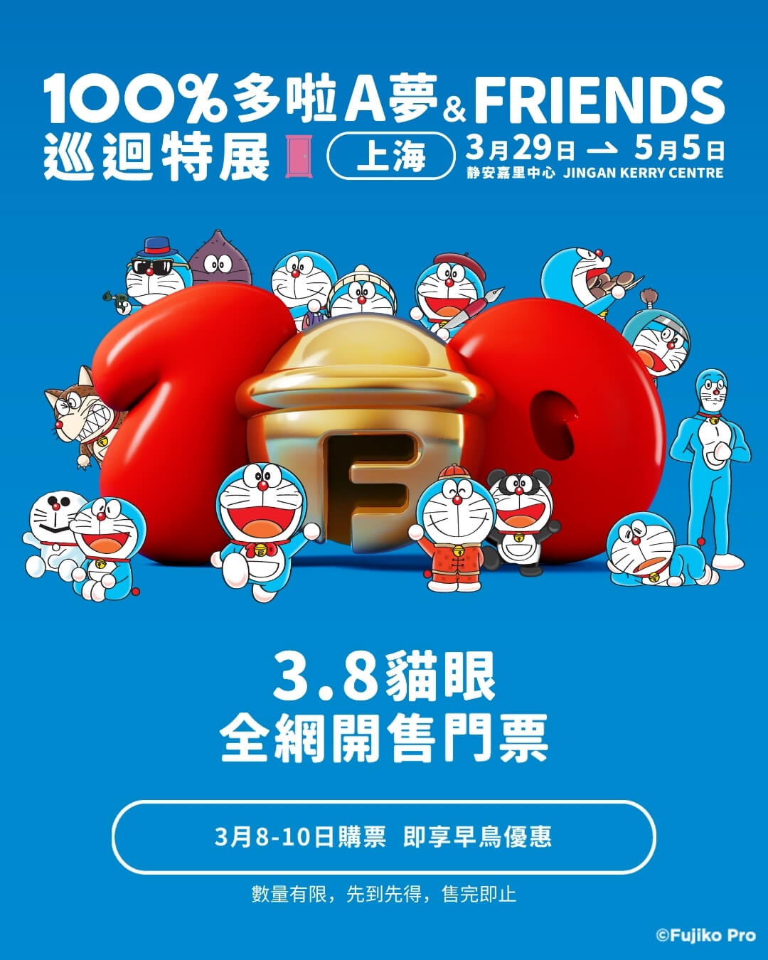 為慶祝「100%多啦A夢&FRIENDS」巡迴特展站於上海舉辦,特展將推出一系列獨家主題紀念品。商品包括部分香港站熱賣的收藏品,以及趣味可愛的毛絨公仔等,同時還有為上海站特別設計的專屬限定款,讓粉絲能收藏上海站的獨特回憶。所有商品將於3月29日展覽開幕當天起於現場期間限定商店發售,部分商品亦會同步於DDT Store 網上發售,方便無法親臨現場的海外粉絲搶購心儀商品。展覽現場的期間限定商店向公眾開放,毋須持票或預約即可入內選購。