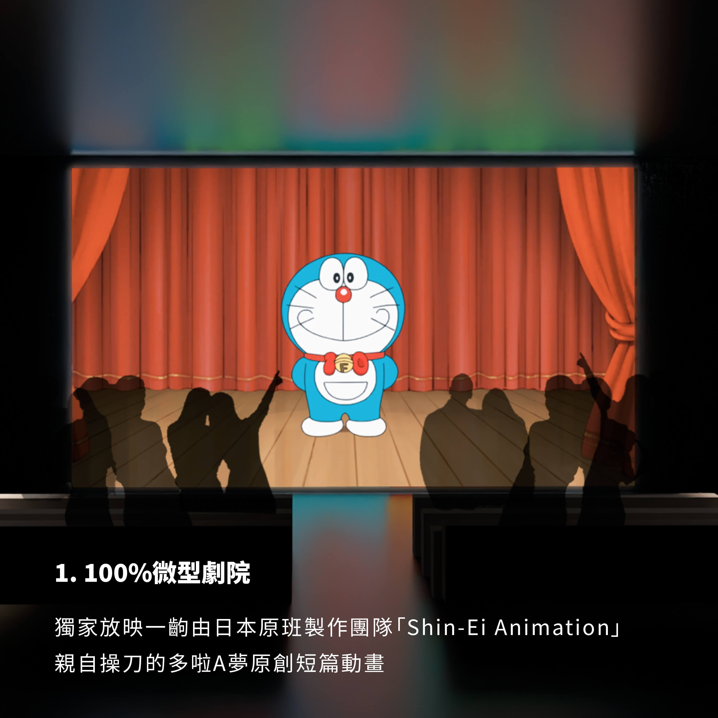 「100%多啦A夢動漫藝術展覽廳」將獨家放映ARR斥資的原創短篇動畫——日本著名動畫公司「Shin-Ei Animation」為香港度身訂造原創動畫。展館另特設沉浸式體驗空間及漫畫裝置,同時展出多幅原畫復刻作品、大長篇及精選電影場景,及17組首次展示的雕塑。
